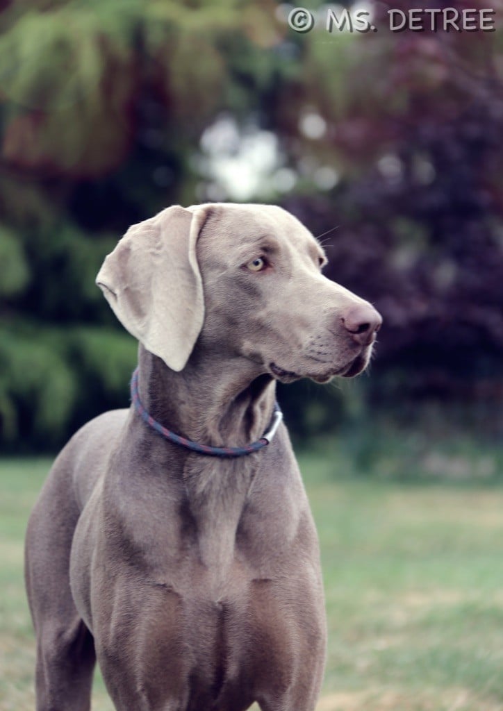 Le Braque de weimar est bel athlète, élégant, qui se distingue des autres chiens du 7ème groupe par sa robe argentée et par un regard ambré à la fois doux et envoutant.